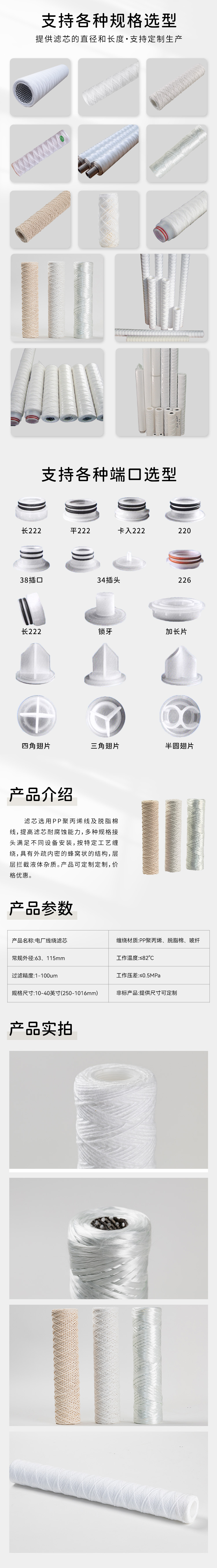 【產(chǎn)品簡介】:過濾精度:1、3、5、10、25、50、75、100um 應(yīng)用行業(yè):電廠、反滲透過濾、循環(huán)水過濾、石化等 線繞濾芯在使用一段時間后,會因為濾芯孔徑被堵塞而導(dǎo)致通量降低,影響過濾效果。因此,需要定期更換濾芯,以保證水處理系統(tǒng)的正常運行。一般來說,濾芯的更換周期應(yīng)該根據(jù)實際情況而定,一般為3-6個月。