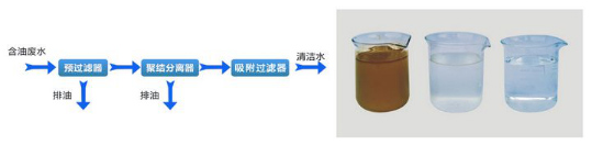 含油廢水處理設(shè)備采用全物理法、可靠、方便、的去除及回收含油污水中的分散油和乳化油,使處理后的排放水達到或超過《GB8978-96污水綜合排放標(biāo)準(zhǔn)》一級排放的要求(含油量小于5mg/L)。